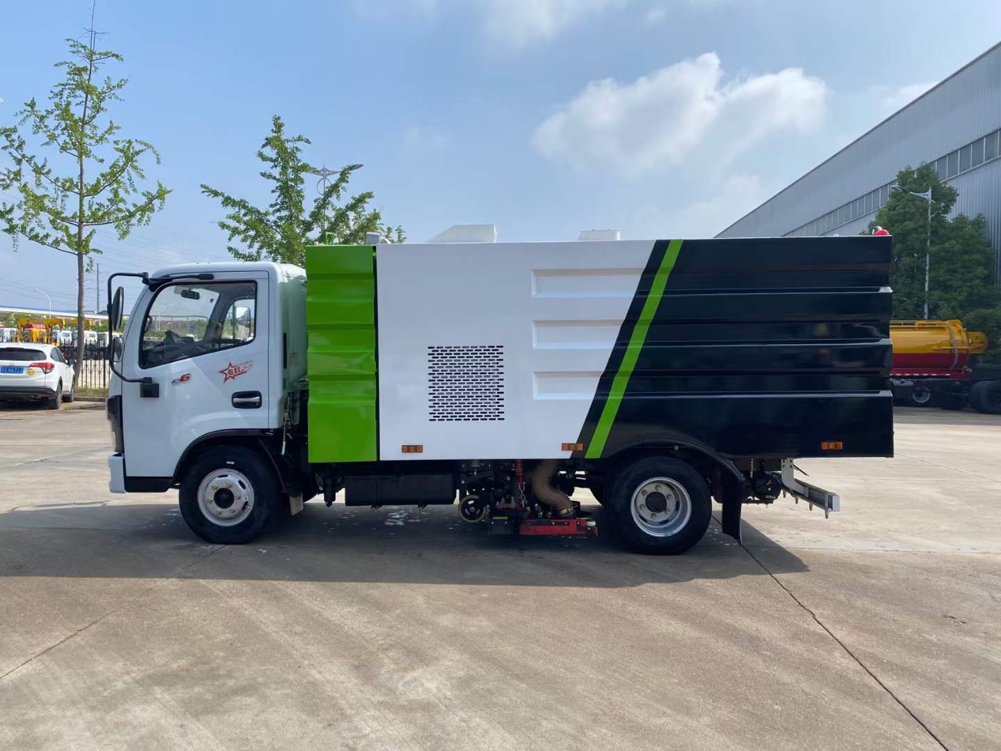 隨底盤選裝駕駛室;選裝后部結(jié)構(gòu)樣式.僅采用3308mm軸距;側(cè)防護(hù)由專用裝置吸盤代替;后防護(hù)材料Q235,焊接連接,后部防護(hù)斷面尺寸(mm):120×50,離地高度(mm):400;ABS型號/廠家:ABS/ASR-12V-4S/4M/襄陽東風(fēng)隆誠機(jī)械有限責(zé)任公司;該車主要由箱體和吸塵裝置組成,用于路面垃圾清掃.