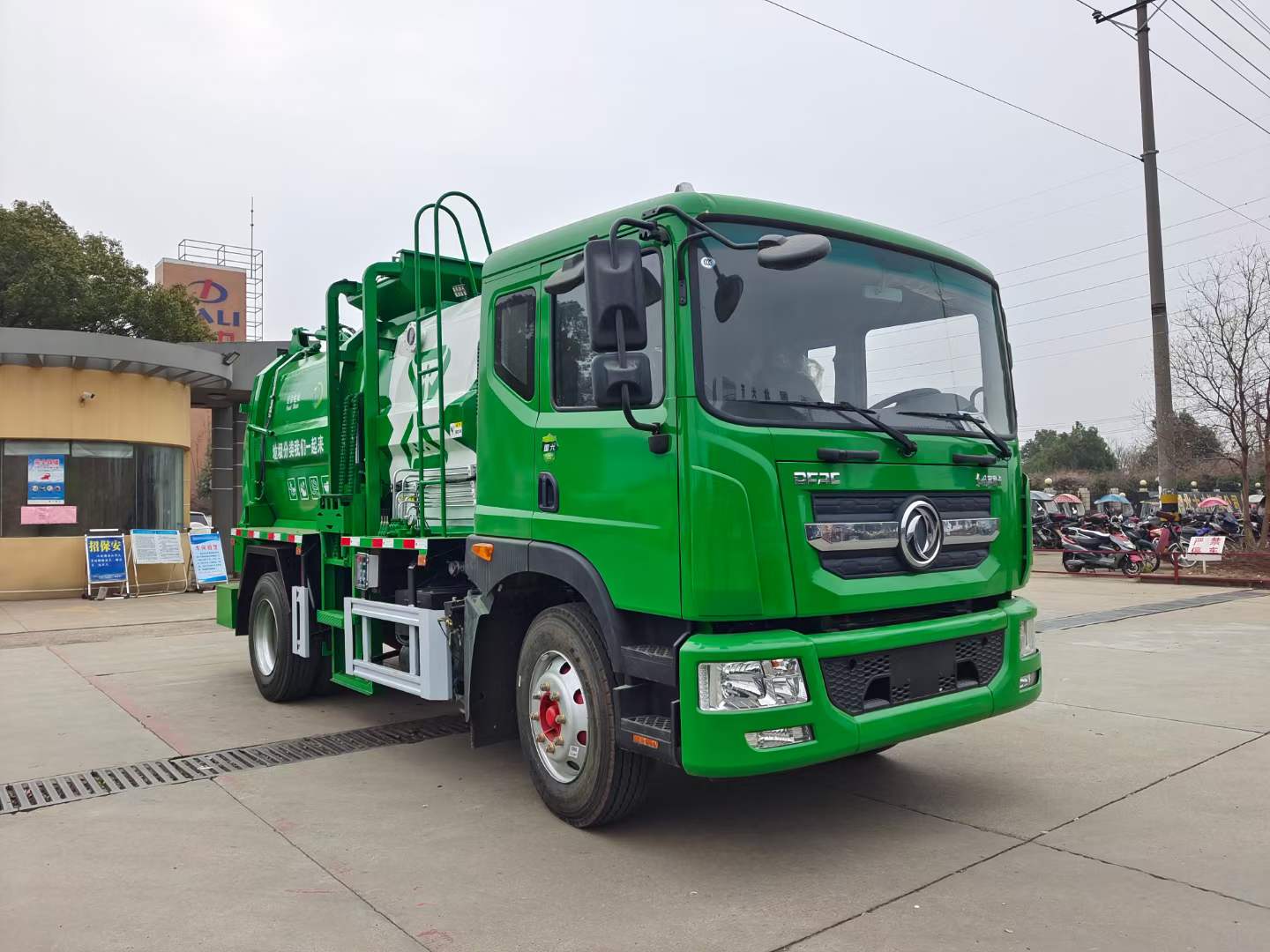 5、密閉排料(選裝):不用后門打開,液態垃圾可以通過管道路排出,固態垃圾可以通過旋轉絞籠擠壓排放出車廂。