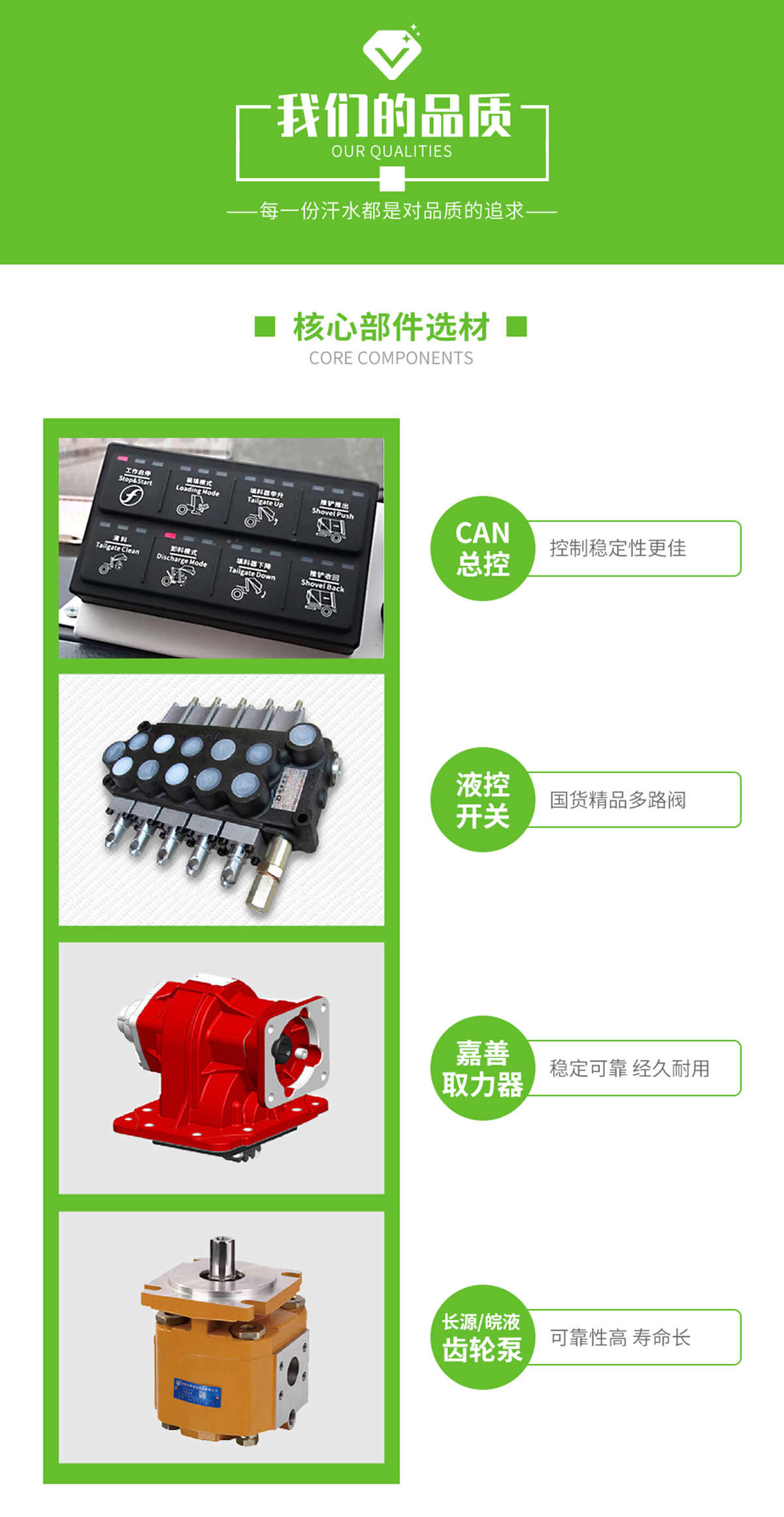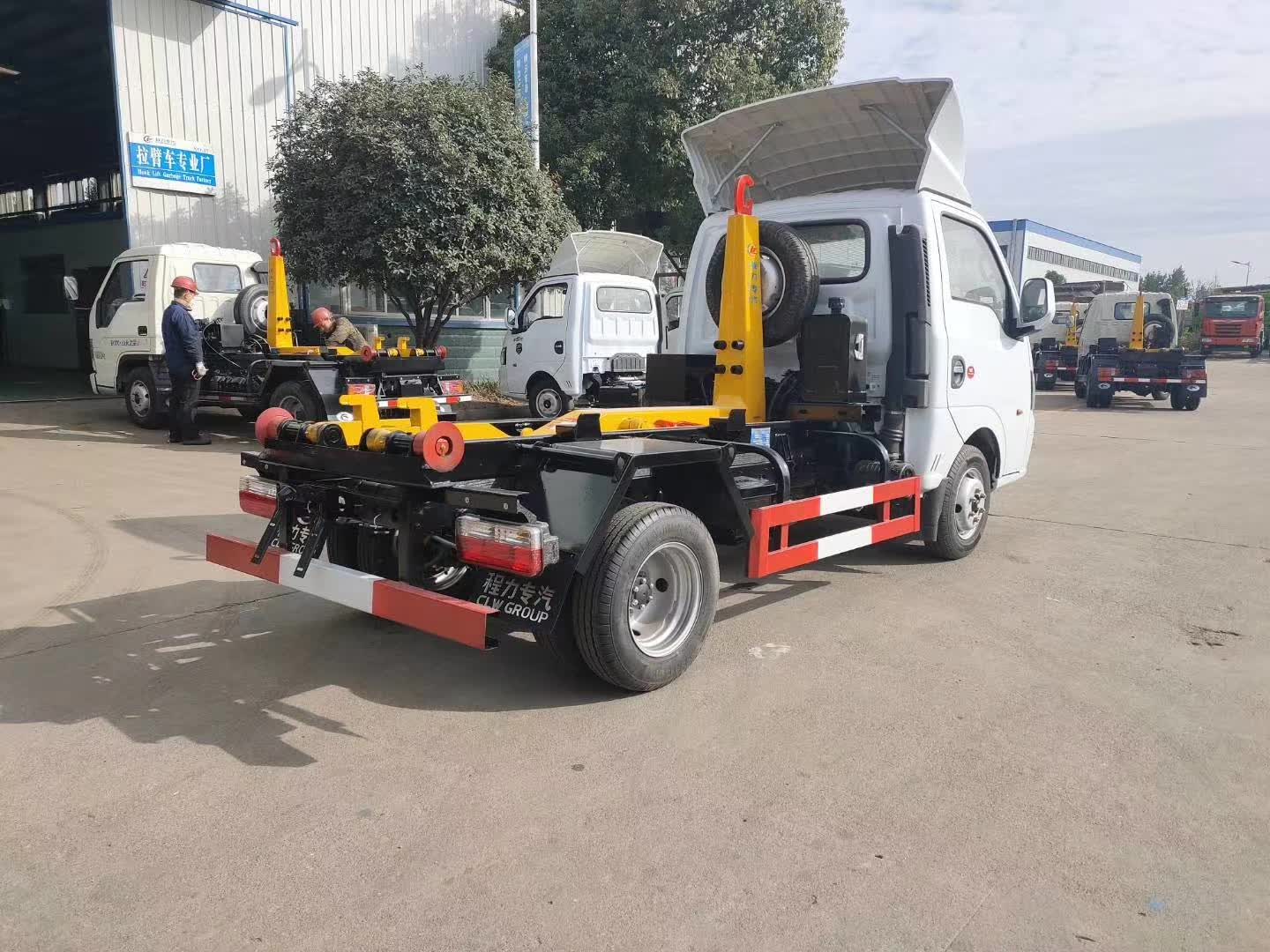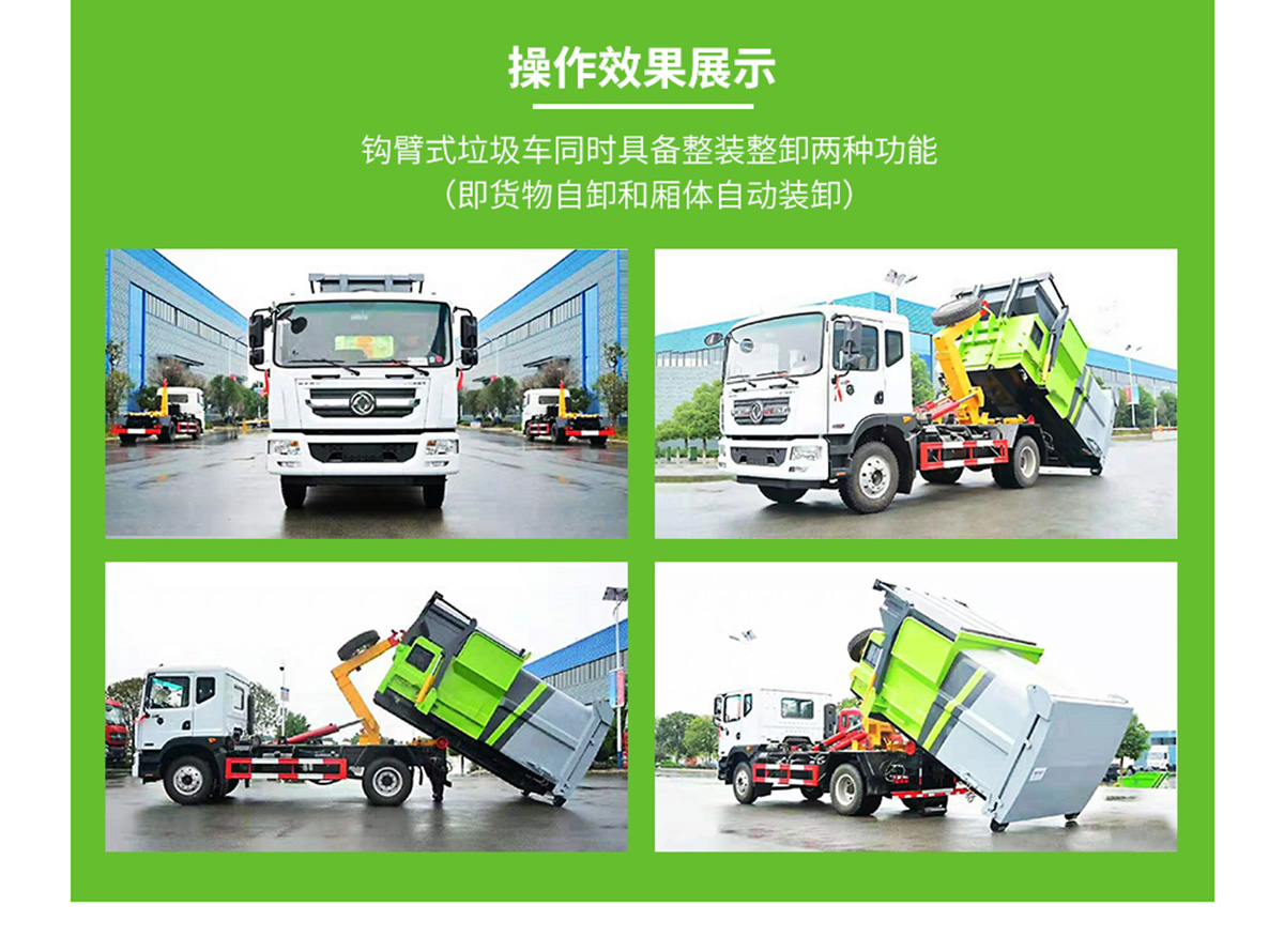 底盤配置:柳機113馬力,1650單排駕駛室,5檔變速箱,175R14真空輪胎【后雙輪】,前后橋1.5/2.5。標配動力轉向,前盤制動,中控門鎖,電動門窗,定速巡航,藍牙電話,LED日間行車燈,空調,預留取力器窗口。 上裝配置:勾臂垃圾車標配:由液壓系統、操作系統、拉臂,組成。舉升油制缸為國內知名液壓件廠家生產的雙作用油缸,多路閥液壓控制,操作員手動控制垃圾廂吊上放下,帶自卸功能,上下一次工作循環時間≤40秒。垃圾箱冷板壓制垃圾箱,帶后門密封圈,帶金屬滾動輪。 |